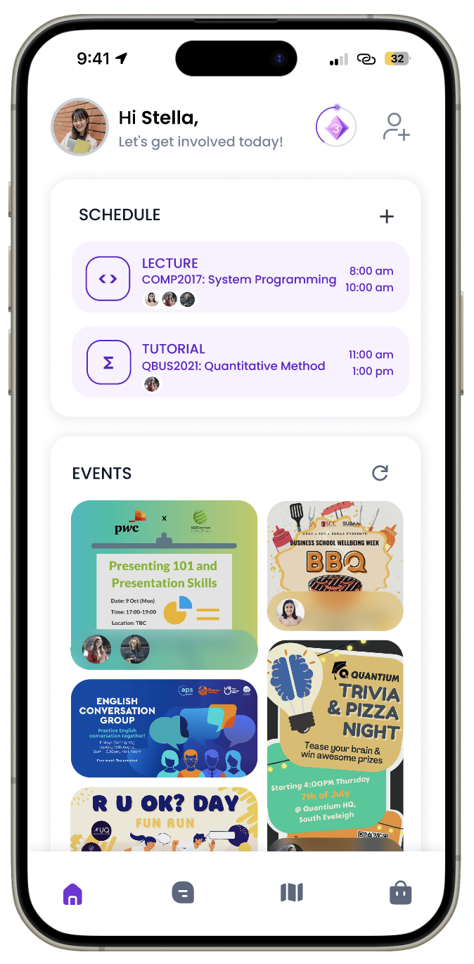 But through furthur discussion with our users, we found that this is a not very healthy system. Students should be able to step out of their comfort zones by their own intention, rather than being driven by incentives. We realised it may not the best way to help students to cultivate meaningful friendships. Also it’s very hard to implement it in the backend to get all event details on campus.